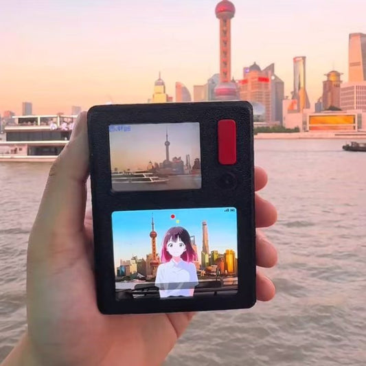 Creative AI Smart Dual-Screen Mini Camera | Real-Scene to Anime Conversion, Voice Interaction, Virtual Character & Portable Tech Gift